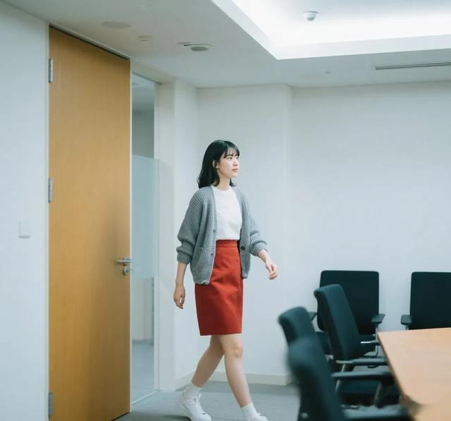 软糯针织开衫(选深色系更显质感,如深灰、藏蓝),配高腰A字半裙(长度到膝盖上方最安全),露出纤细小腿,青春又干练。踩一双小白鞋,弱化职场严肃感,周五通勤穿超有“要放假”的松弛感~