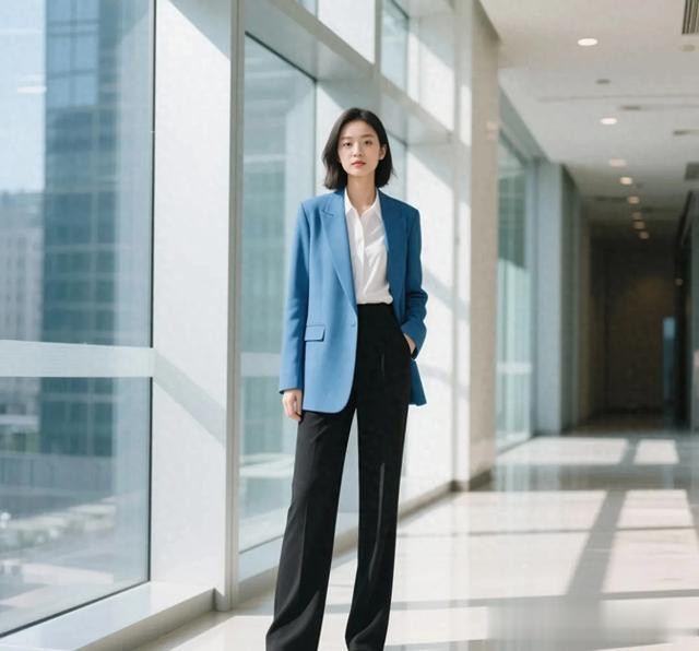 选微宽松的廓形西装(别选太板正的“银行款”),内搭垂坠感衬衫(雪纺/醋酸材质,不易皱还显高级),下身配直筒西裤(九分长度露脚踝更利落),踩一双低跟乐福鞋,通勤气场拉满,还能一键切换下班小聚模式~
